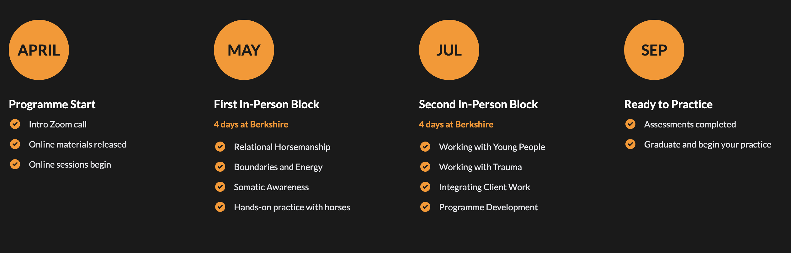No. Access to equines is provided during the experiential blocks. You'll work with trained therapeutic horses in a supported environment. However, you need access to horses for your practice client work and after graduation when putting into practice what you have learnt. We have many EFP practitioners who don't have their own herd but who work with other herds.